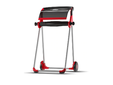 Количка за индустриална хартия TORK, система W1. Мобилна е и може лесно да се придвижва в различни части на промишлено помещение в зависимост от нуждата. Може да се прикрепи чувал за събиране на използвани кърпи. Възможност да се откъсват кърпи с една ръка.