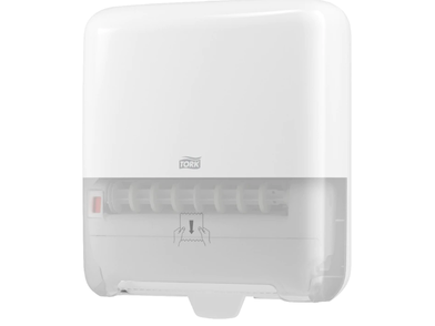 Автоматичен диспенсер TORK за кърпи за ръце, за хартия на ролка. Лесен контрол на разхода с възможност за заключване. Пести се време и труд, тъй като по-рядко се налага обслужване.
